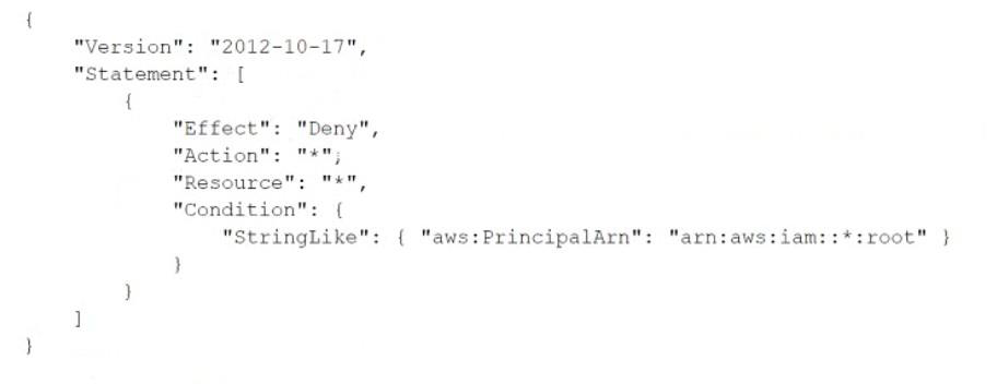 A recent alert shows that the root user in a member account launched an Amazon EC2 instance. A DevOps engineer must create an SCP at the organization's root level that will prevent the root user in member accounts from making any AWS service API calls.