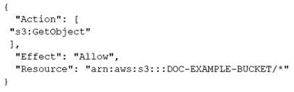 A developer is creating an application for a company. The application needs to read the file doc.txt that is placed in the folder of an Amazon S3 bucket that is named DOC-EXAMPLE-BUCKET. The company's security team requires the principle of least privilege to be applied to the application's IAM policy.