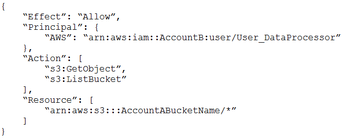2. In Account A, set the S3 bucket policy to the following: