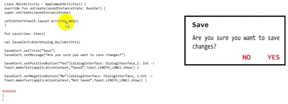 The first image below includes an Android code to generate AlertDialog which is illustrated in the second image. The last line of the code includes "xxxxxxx". Which of the following choices is the correct line of code to replace "xxxxxxx" for the purpose of showing this AlertDialog?