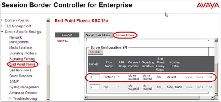 Two types of flows need to be defined for the proper routing of SIP messages from and to the endpoints and the SIP server. Server Flows – Routing destination sent by SIP server (Session Manager). Subscriber Flows – Routing destination sent by SIP endpoints. Example, Server Flows:  References: Avaya Aura Session Border Controller Enterprise Implementation and Maintenance (2012), page 540, 546