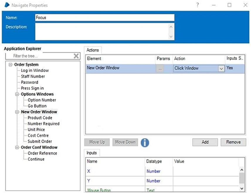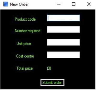 The Order System application has been successfully launched and Blue Prism has navigated the application to the following screen: