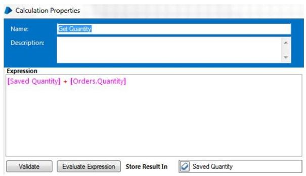The Saved Quantity Data Item is configured as a number with the initial value 0.