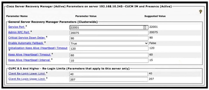 An administrator is setting up the Cisco Unified IM and Presence on-premises high availability feature and wants the Server Recovery Manager to initiate failover after 90 seconds. However, failover is happening after 60 seconds. How is this issue corrected?