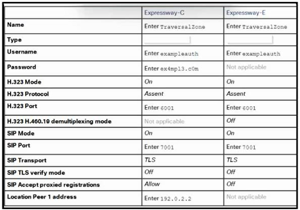 Refer to the exhibit. What are “Type” field values for this Expressway servers zone configuration?