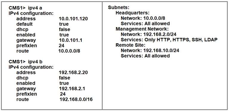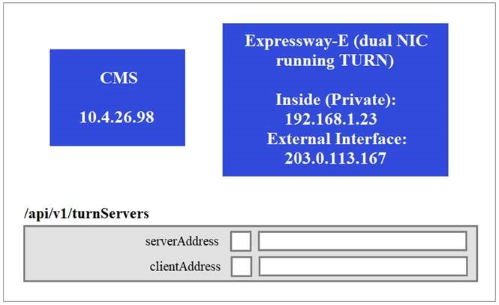 Which two values for clientAddress and serverAddress should the administrator configure? (Choose two.)