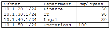 5. Combining the subnets and increasing the allocation of IP addresses available to support three hosts for each employee