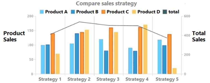 Strategy 4 provides the best sales in comparison to other strategies. This is because the total sales for Strategy 4 are the highest among all the strategies, as shown by the black line. The other statements are not accurate or do not uphold integrity in data reporting. Here is why:Statement A is false because sales are not approximately equal for Product A and Product B across all strategies. For example, in Strategy 1, Product A has more sales than Product B, while in Strategy 3, Product B has more sales than Product A. Statement C is misleading because it does not account for the difference in scale between the products. While Strategy 2 has the highest total sales among all products, it does not necessarily mean that it is the most effective for each product. For instance, Product D has very low sales in Strategy 2 compared to other strategies.Statement D is biased because it does not provide any evidence or justification for why Product D should be promoted more than the other products in all strategies. It also ignores the fact that Product D has the lowest sales among all products in most of the strategies.