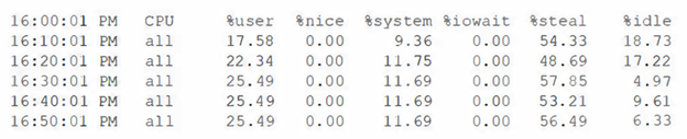 A systems administrator receives reports that several virtual machines in a host are responding slower than expected. Upon further investigation, the administrator obtains the following output from one of the affected systems: