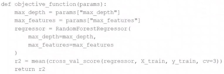 from hyperopt import fmin, tpe, hp, SparkTrials search_space = { 'x': hp.uniform('x', 0, 1), 'y': hp.uniform('y', 0, 1) } def objective(params): return params['x'] ** 2 + params['y'] ** 2 spark_trials = SparkTrials(parallelism=4) best = fmin(fn=objective, space=search_space, algo=tpe.suggest, max_evals=100, trials=spark_trials)