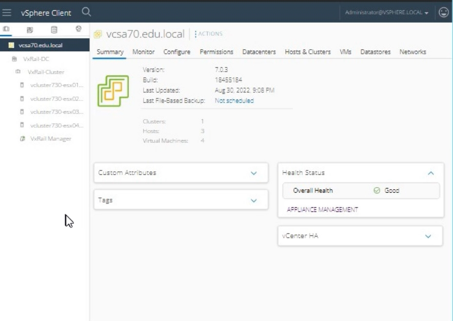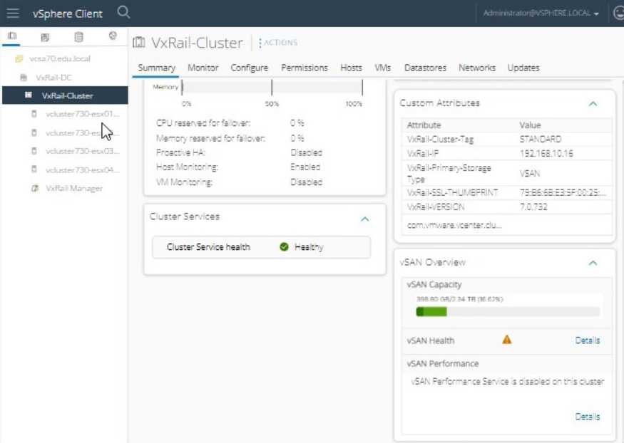 Expand the VxRail-DC and then the VxRail-Cluster.