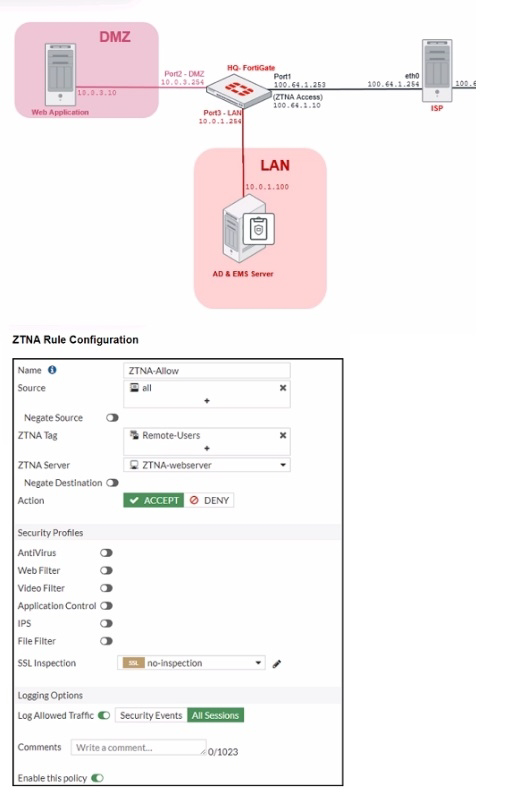 ZTNA and FortiClient EMS configuration documentation from the study guides.