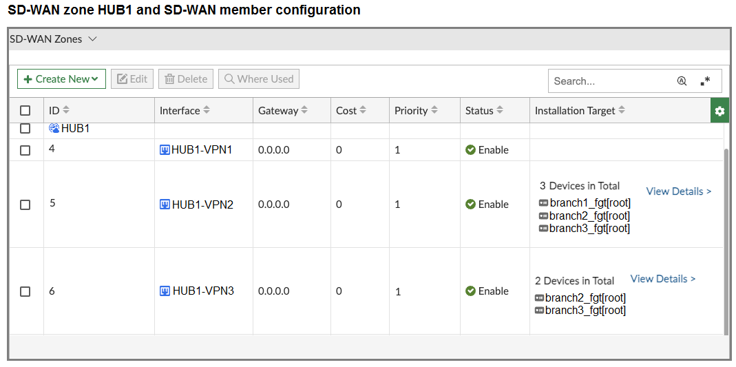 You applied the changes to the devices and want to use the FortiManager monitors menu to get a graphical view that shows the status of each SD-WAN member.