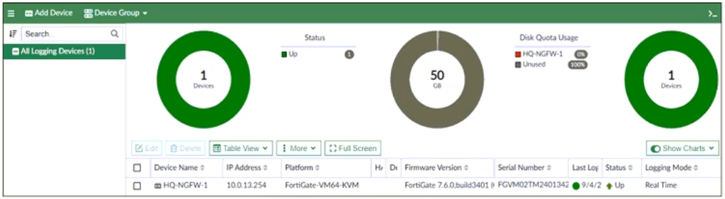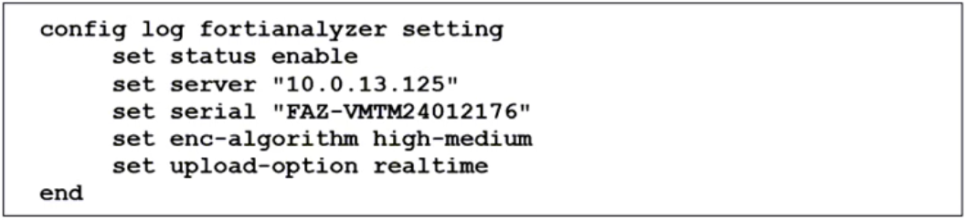 The FortiGate device HQ-NGFW-1 with the IP address 10.0.13.254 sends logs to the FortiAnalyzer device with the IP address 10.0.13.125. The administrator wants to verify that reliable logging is enabled on HQ-NGFW-1.