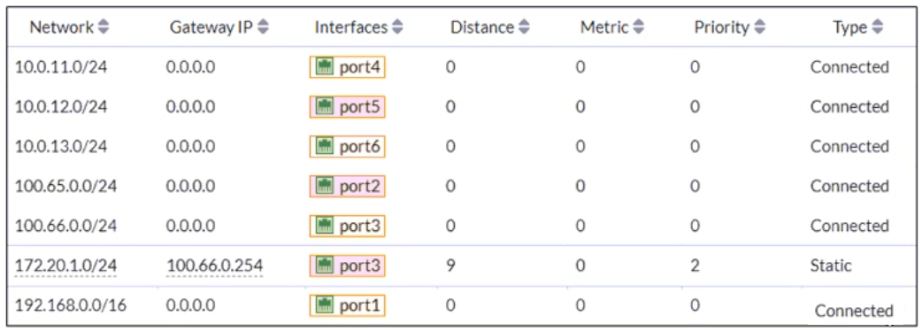An administrator wants to create a new static route so the traffic to the subnet 172.20.1.0/24 is routed through port2 only.