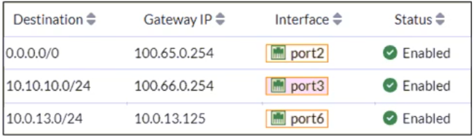 4. A packet with the source IP address 10.100.110.10 arriving on port2 is allowed if strict RPF is enabled.