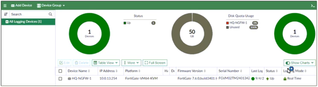 The FortiGate device HQ-NGFW-1 with the IP address 10.0.13.254 sends logs to the FortiAnalyzer device with the IP address 10.0.13.125. The administrator wants to verify that reliable logging is enabled on HQ-NGFW-1.