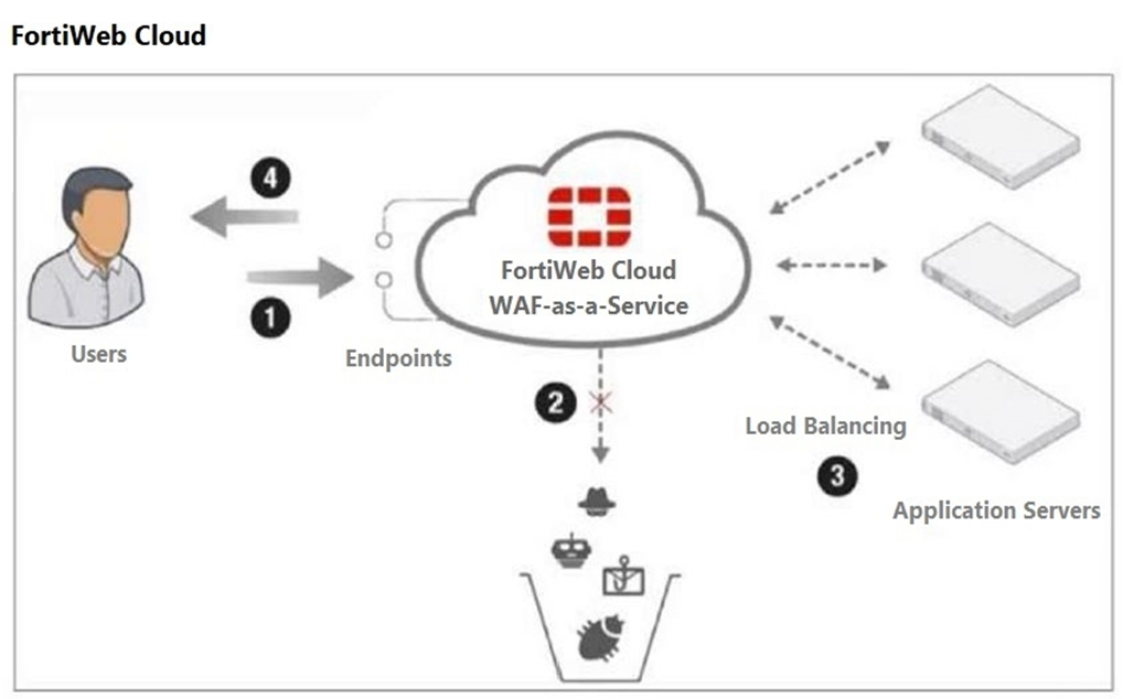 2. FortiWeb Cloud filters the incoming traffic from users, blocking the OWASP Top 10 attacks, zero-day threats, and other application layer attacks.