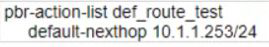 Option C is a part of the solution because it defines a policy-based routing action list named route_test, which specifies the next hop IP address as 10.1.1.253 for the matching traffic. This is the new default route that the user wants to use for the subnet 10.2.250.0/24. The interface null parameter indicates that the traffic will be routed to the next hop without using a specific interface1.