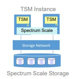 Note: Multiple Spectrum Protect (TSM) instances store DB and storage pools in a Spectrum Scale file system (GPFS)