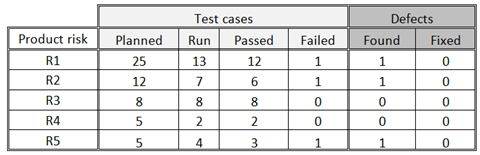 4. The test execution table doesn’t give an indication of the risk level of the open defects and the test cases that failed or are not run yet