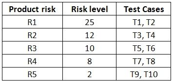 Furthermore the period for test execution is very short. Your goal is to test all the product risks in a risk-based way, while assuring that each product risk gets at least some amount of testing.