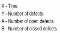 The following chart represents metrics related to testing of a project that was competed. Indicate what is represented by tie lines A, B and the axes X.Y