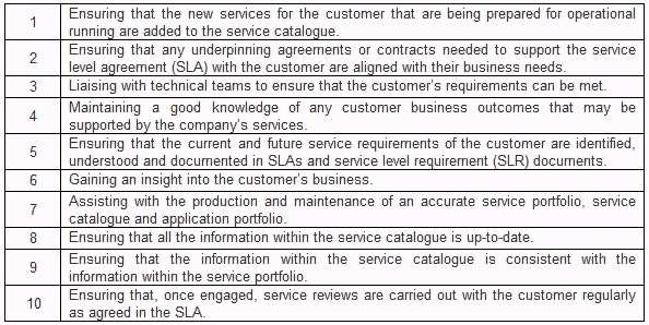 An opportunity has arisen to engage a new customer, which could lead to a very large contract. Contact has been made with the potential customer and a meeting arranged. This will be the first time that these processes have been used to engage a new customer and the IT service manager wishes to make sure that all concerned are clear of their roles.