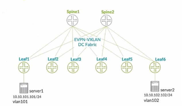 In the EVPN-VXLAN data center fabric bridged overlay architecture shown in the exhibit, the servers are connected to Lead and Leat6 using the same virtual network identifier (VNI).