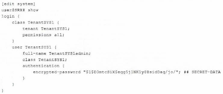 Referring to the exhibit, you are assigned the TenantSYS1 user credentials on an SRX Series device.