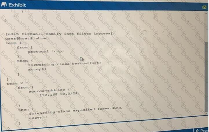 Referring to the exhibit, you configured a new multicast classifier for the ge-1/2/0 interface ICMP traffic to the best-effort queue and traffic from 190.168.20.0/24 to the expedited forwarding queue. You received noticed that some application is not working after the change. Which configuration change will remedy the problem?