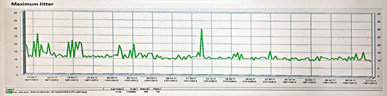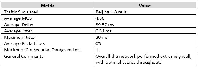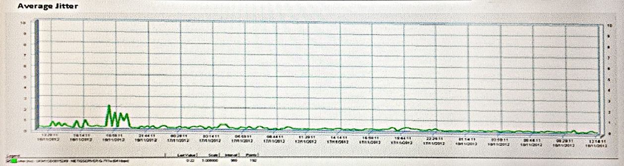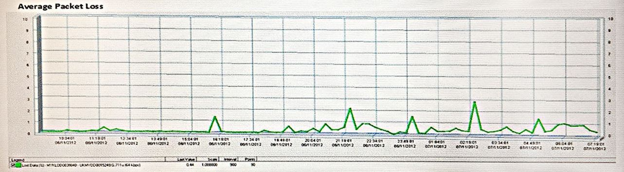 Contoso, Ltd., has a headquarters in London and has 20 branch sites. Each branch site connects to the headquarters by using a Virtual Private Network (VPN) over the Internet. The company plans to implement Skype for Business Server 2015. Before they start deploying the solution, they want to ensure that the network is capable of the required media traffic that the new solution will produce. The following image shows the results of the network traffic simulation.