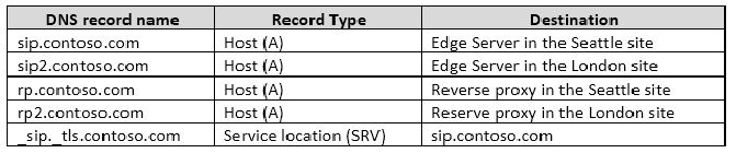 1. Create an A record for lyncdiscover.contoso.com that points to the server proxy in the Seattle site.