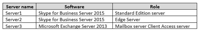 You have a Skype for Business Server 2015 environment. All users are enabled for Enterprise Voice. You have a Microsoft Exchange Server 2013 organization that contains one server named EX01.