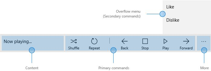 Reference: https://docs.microsoft.com/en-us/windows/uwp/controls-and-patterns/app-bars
