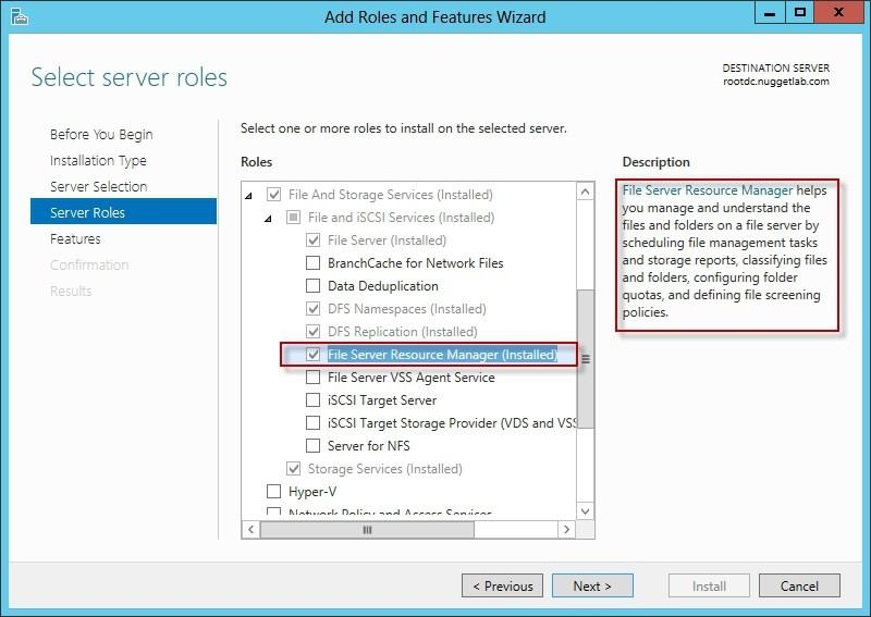 3. Install the File Server Resource Manager role service on Server3 and Server5.