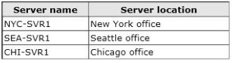 Your company has a main office and two branch offices. The main office is located in New York. The branch offices are located in Seattle and Chicago.