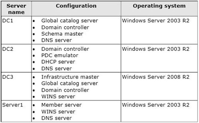 Your network contains an Active Directory forest named adatum.com. The forest contains a single domain. The domain contains four servers. The servers are configured as shown in the following table.