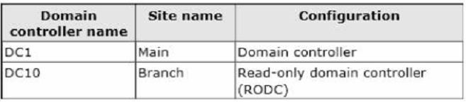 You need to ensure that User1 can log on to DC10 if the network link between the Main site and the Branch site fails.