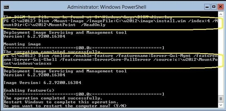 Dism /online /enable-feature /featurename:ServerCore-FullServer /featurename:...