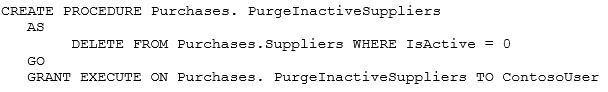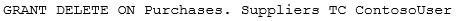 You need to ensure that ContosoUser can delete rows that are not active from Suppliers. You also need to grant ContosoUser only the minimum required permissions.