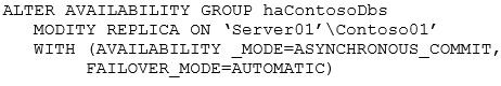 You create an availability group named HaContoso that has replicas named Server01/HA, Server02/HA, and Server03/HA.