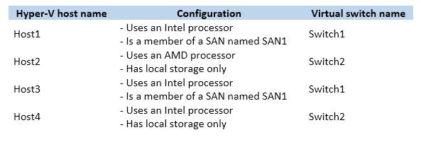 Contoso has a Windows Server 2016 Hyper-V environment configured as shown in the following table.