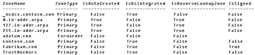 Solution: From Windows PowerShell on Server1, you run the Add-DnsServertrustAnchor cmdlet.