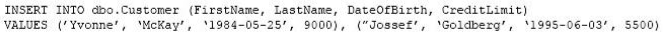 With the INSERT INTO..VALUES statement we can insert both values with just one statement. This ensures that both records or neither is inserted. References:https://msdn.microsoft.com/en-us/library/ms174335.aspx
