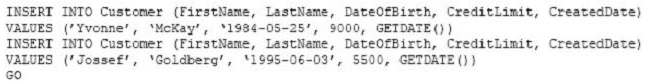 With the INSERT INTO..VALUES statement we can insert both values with just one statement. This ensures that both records or neither is inserted. References:https://msdn.microsoft.com/en-us/library/ms174335.aspx