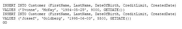 With the INSERT INTO..VALUES statement we can insert both values with just one statement. This ensures that both records or neither is inserted. References:https://msdn.microsoft.com/en-us/library/ms174335.aspx