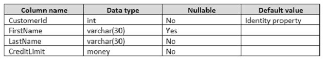 You create a table named Customer by running the following Transact-SQL statement:
