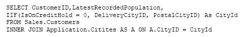 • For customers that are not on a credit hold, return the CustomerID and the latest recorded population for the delivery city that is associated with the customer.