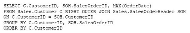 You need to create a list of all customers, the order ID for the last order that the customer placed, and the date that the order was placed. For customers who have not placed orders, you must substitute a zero for the order ID and 01/01/1990 for the date.